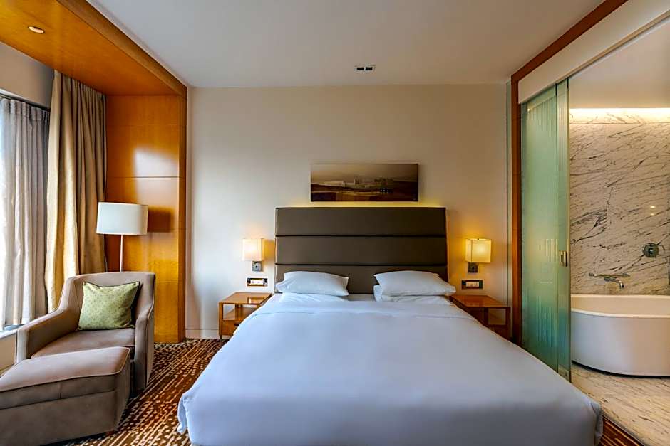 Exquisitely built, the 40-square-yard room features modern day design with wooden floors and floor-to-ceiling windows. Enjoy a plush king sized bed, a work desk with high-speed Internet access, marble bath with a freestanding tub and rain shower. Explore exclusive Regency Club amenities such as breakfast, evening cocktails and canapés at the Regency Club. Room Amenities